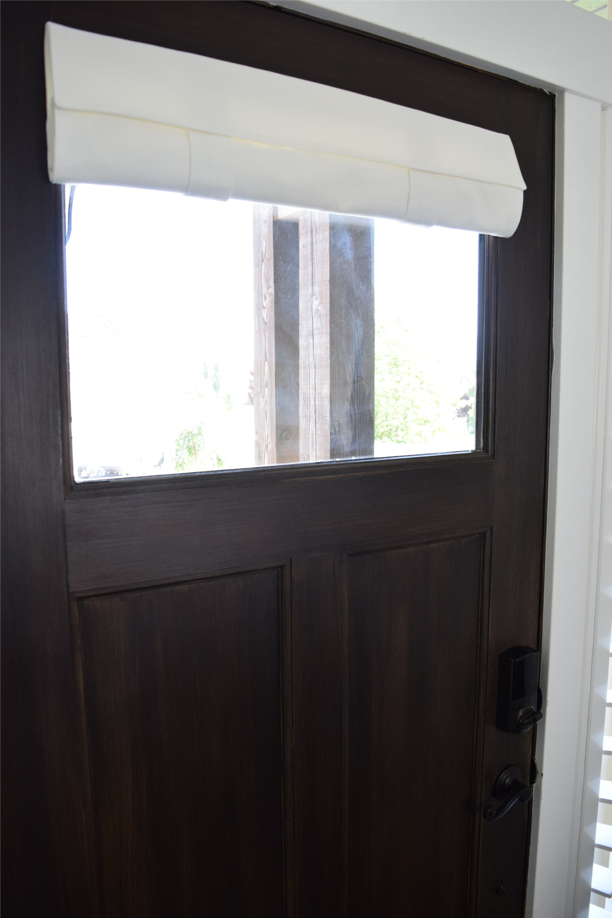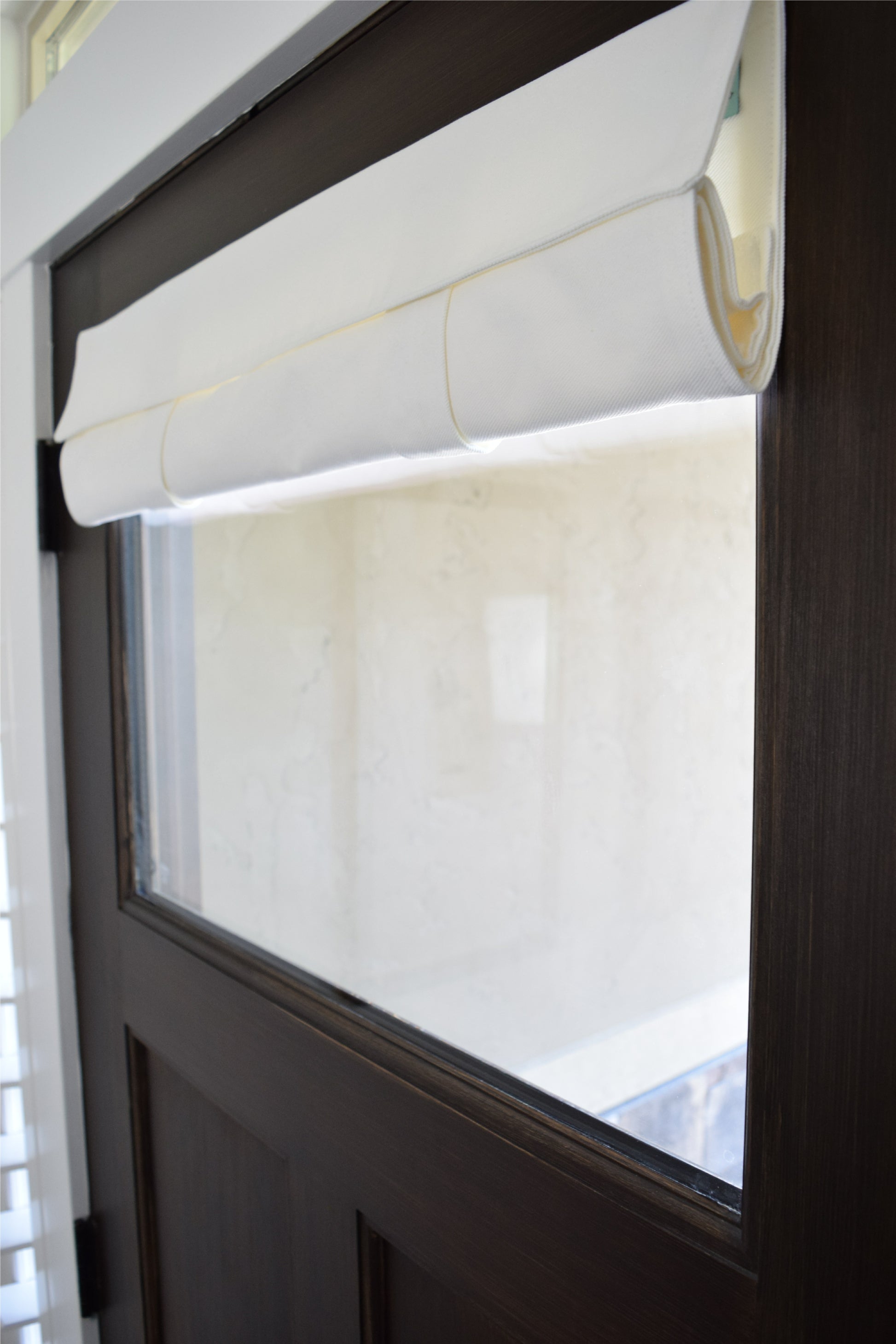 Enjoy convenience and style with our cordless, no-holes-in-your-door Small Front Door Curtain. Manufactured to meet high demand, these curtains are available in the 24" W x 18" L size, sourced from China, offering quicker delivery and competitive pricing compared to our USA-made custom options. For those seeking a slightly larger size, check out our 25" W x 20" L size available in a separate listing.
