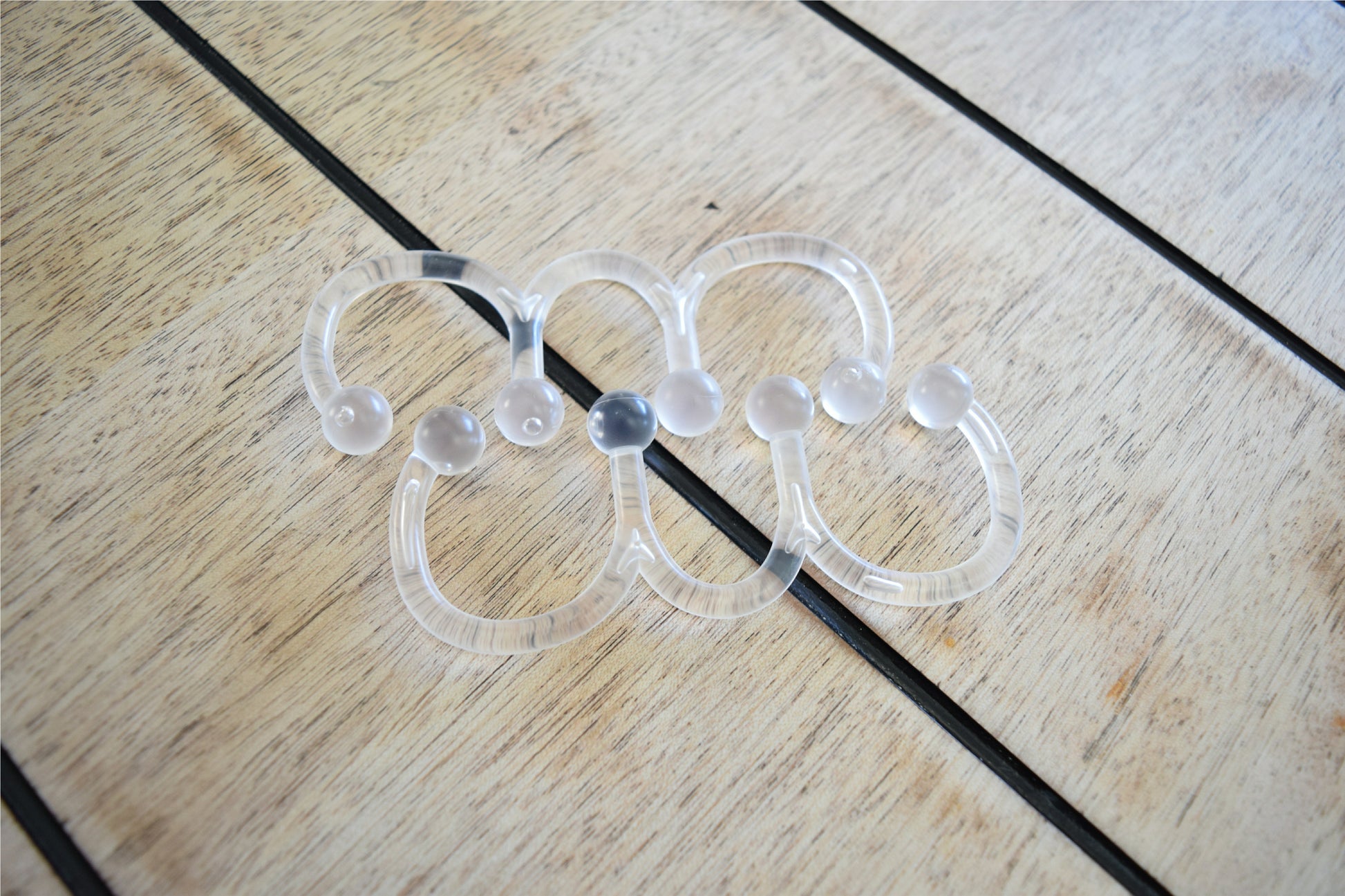 Two Cascade hooks are included in every curtain order, but if you would like an extra set of hooks, please order these Clear Plastic Cascade Camalay hooks. Set of 2. These hooks are 5" tall and 2" wide with 3 rungs per hook.