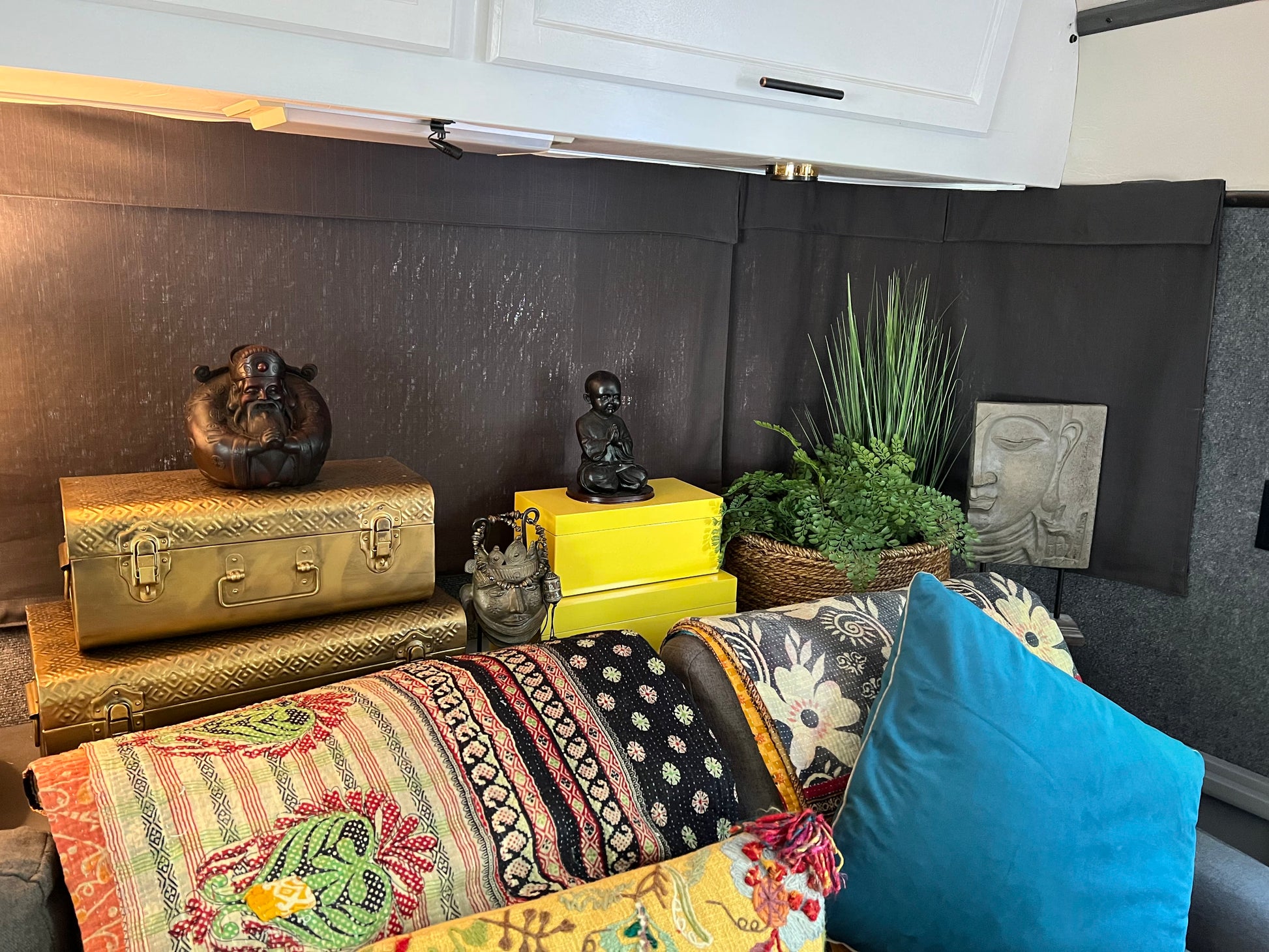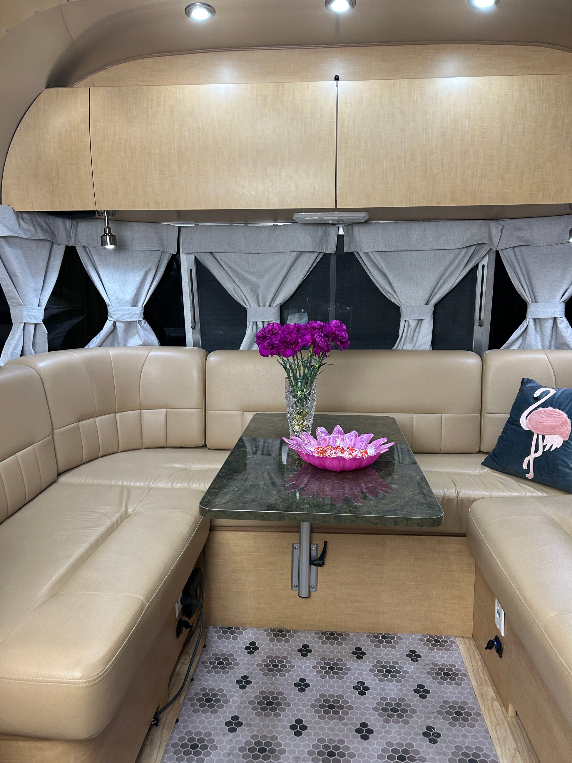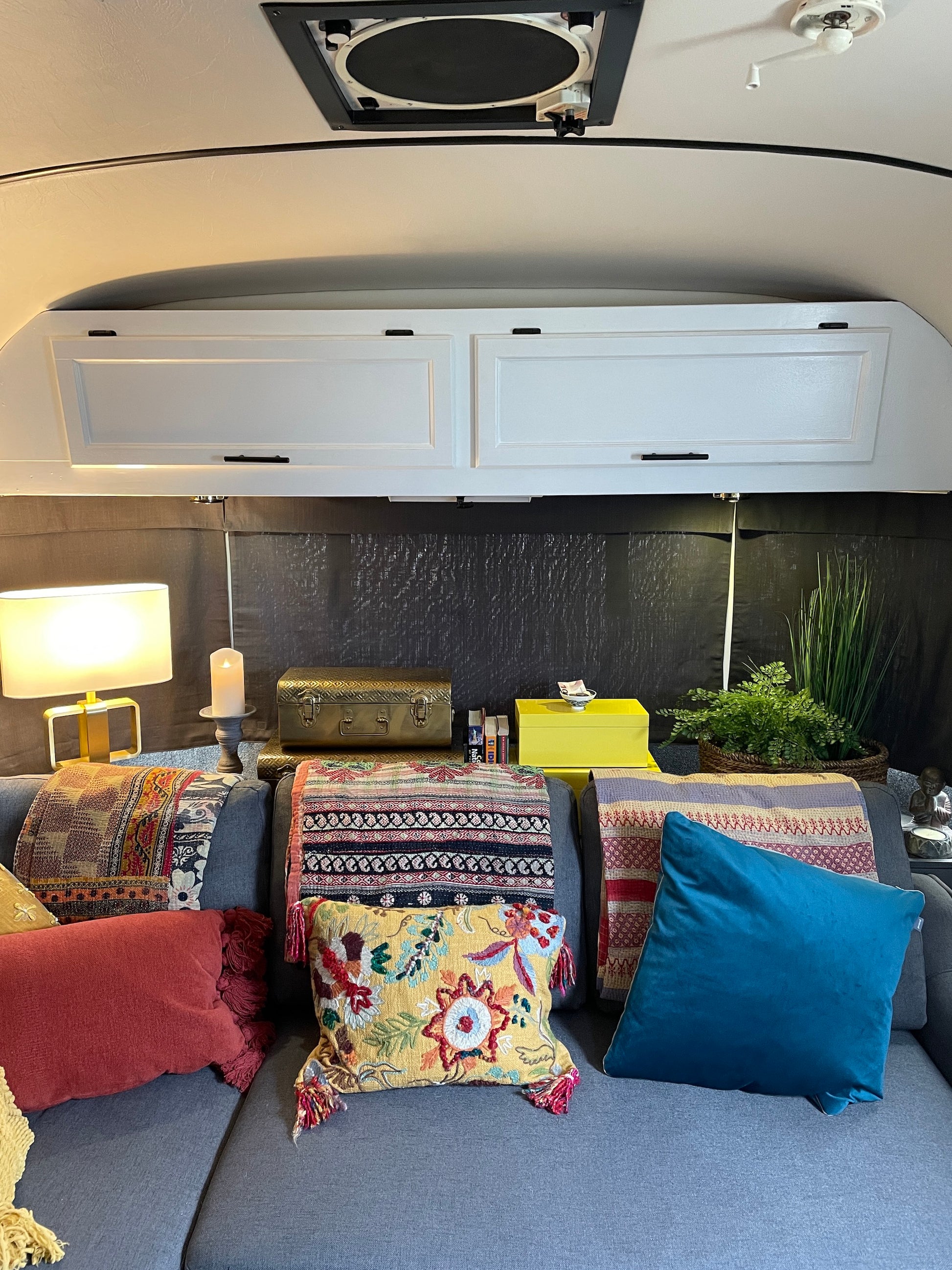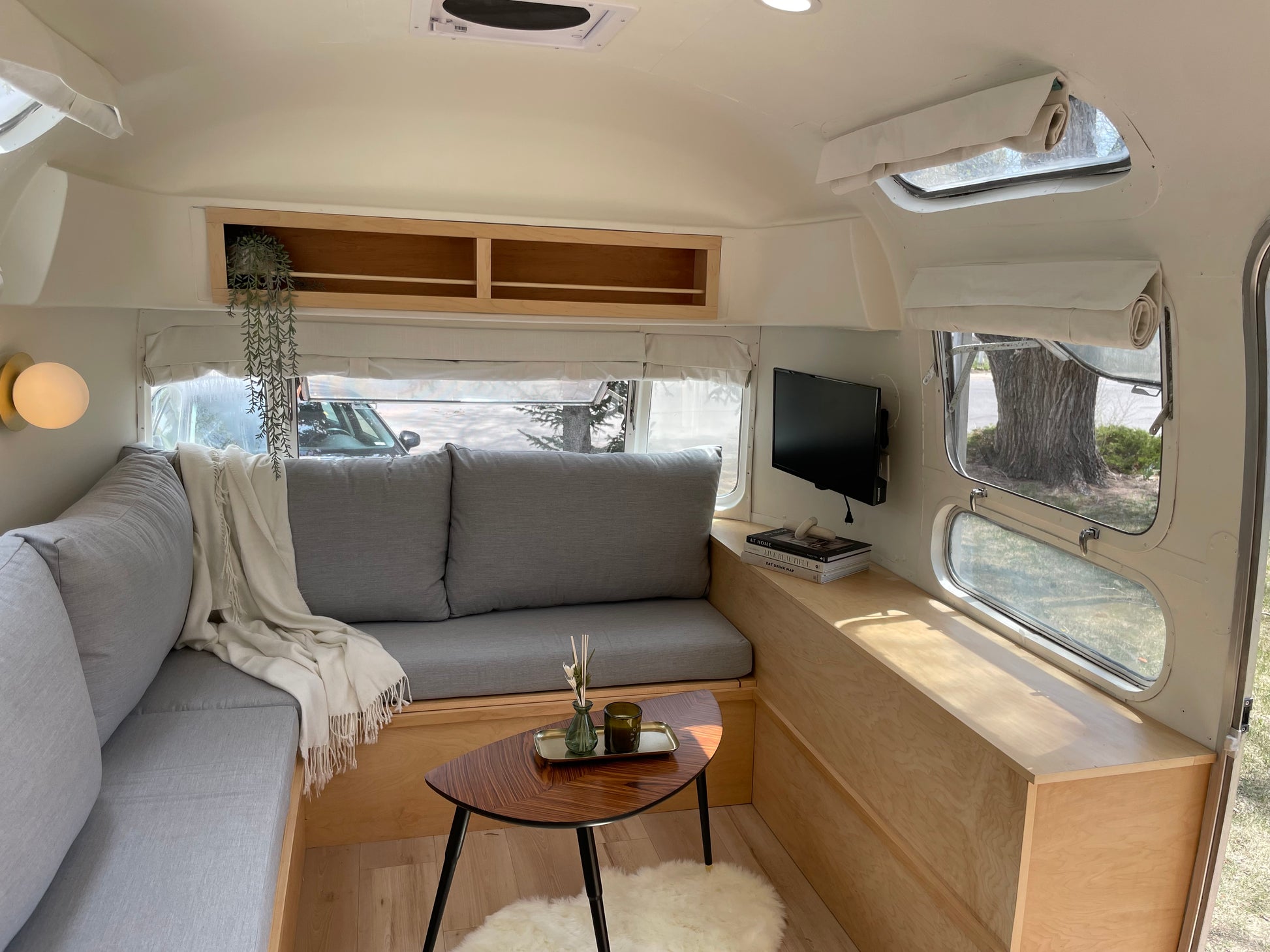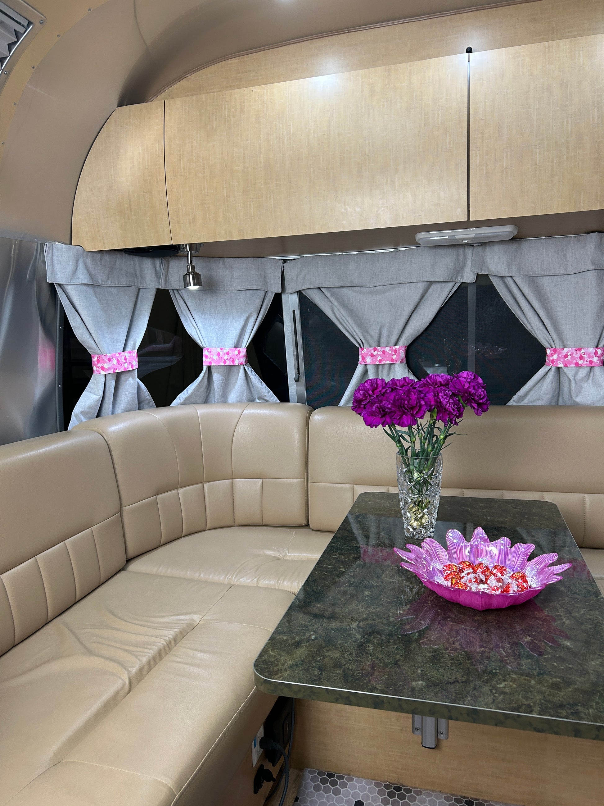 Enjoy convenience and style with Dani Designs Co’s Washable Blackout Airstream® Curtains, including the newly designed (patent pending) curtains for the panoramic windows. Choose either provided adhesive hook strip installation (on regular Airstream windows) or glides with hook strips for track system installation (on panoramic windows). Designed for ease of use and installation. Simply fold or roll up in seconds. These curtains are more than just window coverings; they're an innovative solution, designed to elevate your space. With no cords and no drilling necessary, installation is a breeze, eliminating the need for hardware, putting no holes in your Airstream walls.
