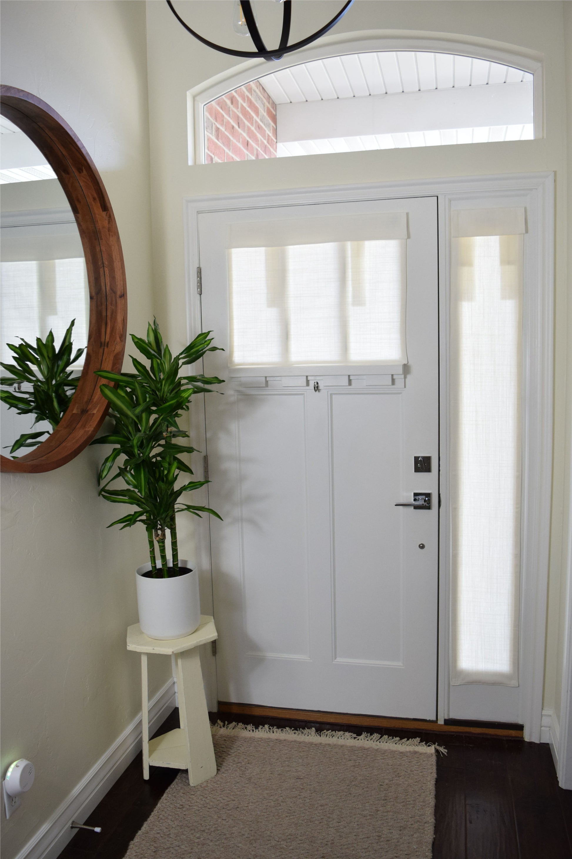 Enjoy convenience and style with our Small Front Door or Sidelight Curtains. Designed for ease of use, simply fold or roll up in seconds. These curtains are more than just entryway coverings; they elevate your space. With no cords or holes, installation is a breeze, requiring only our provided Adhesive Hook & Loop Fastener strip, eliminating the need for hardware, putting no holes in your door.